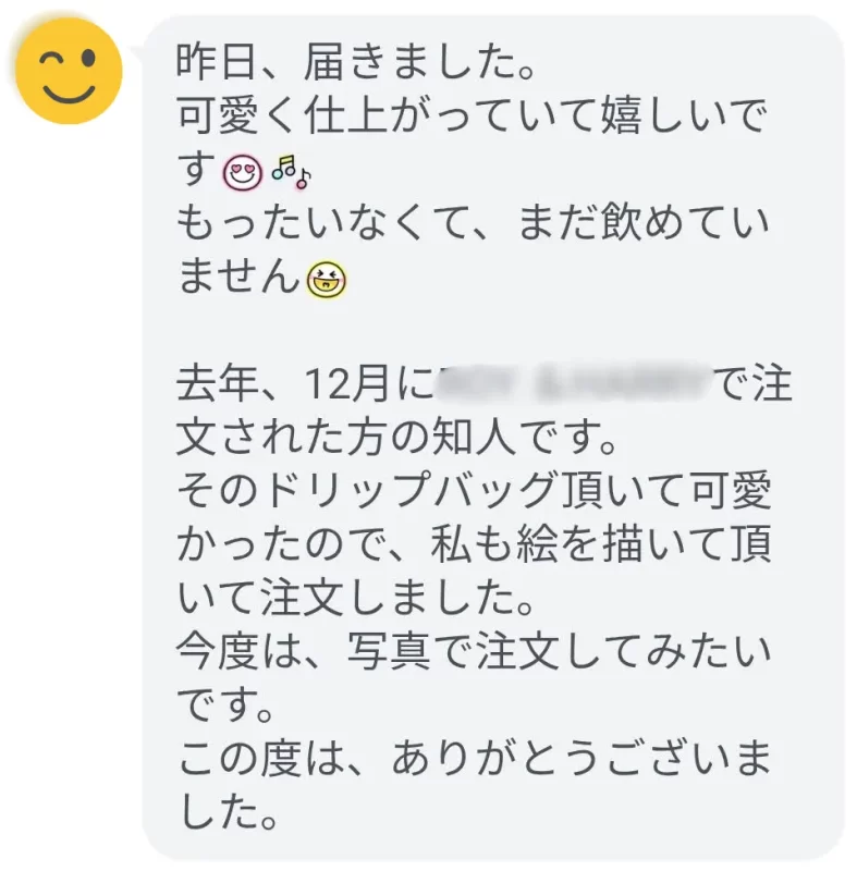 DRIPBAG.comをご利用下さったお客様から嬉しいお言葉を頂きました🎶